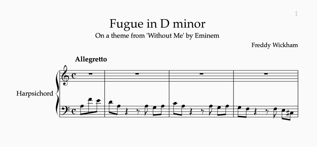 All copyright belongs to Freddy Wickham. Inquiries to freddywickhamfugues@gmail.com