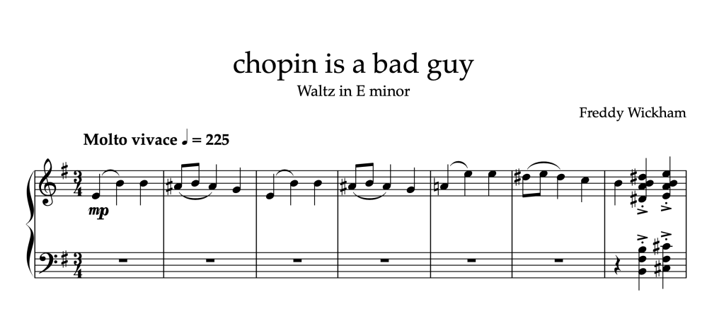 Assorted works for piano: a Chopin-style waltz based on the riff from Billie Eilish’s Bad Guy, and a re-imagining of Mozart’s music in Einaudi Kleinaudi Nachtmusikaudi.